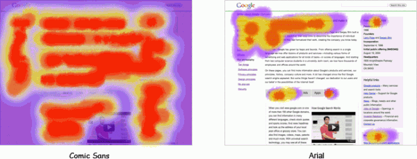 今天看有文章介绍Google 实验结果结果:Comic Sans 字体最受欢迎,互联网搜索巨头 Google 最新的视觉追踪实验结果显示,使用老掉牙的 Comic Sans 字体的网页可以吸引用户仔仔细细的阅读页面上的每一个字。不知道是否确实如上所说。
